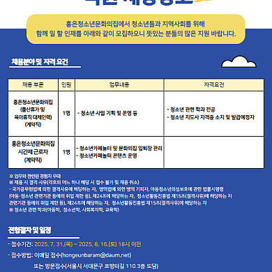 [구인] 홍은청소년문화의집 [출산휴가 및 육아휴직 대체인력] 및 시간제근로자 채용 공고
